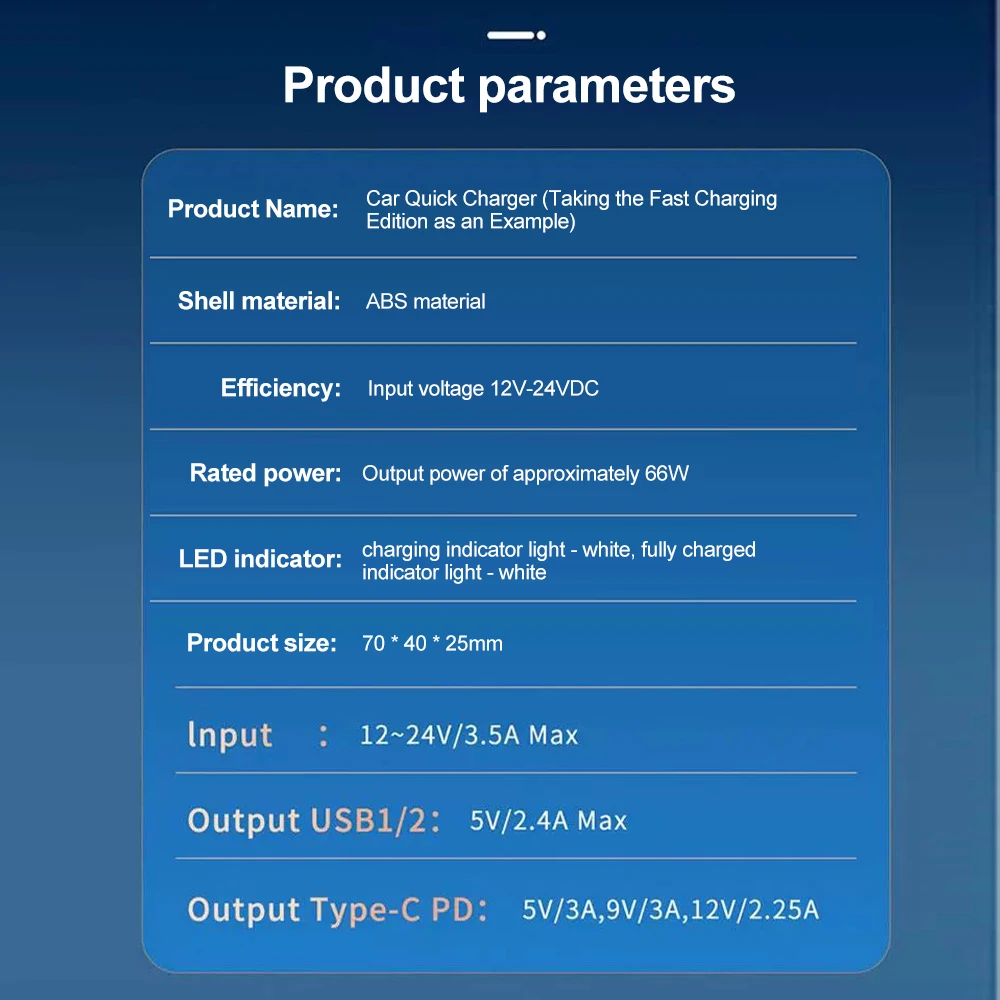 Output Parameter: Green Super Port: 5V/3A 9V/2.2A12V/1.6A (Display super fast charging)