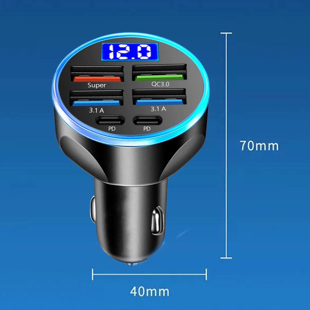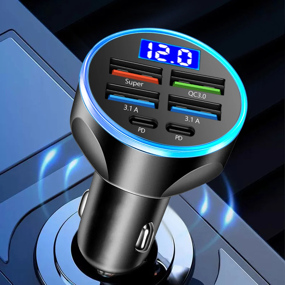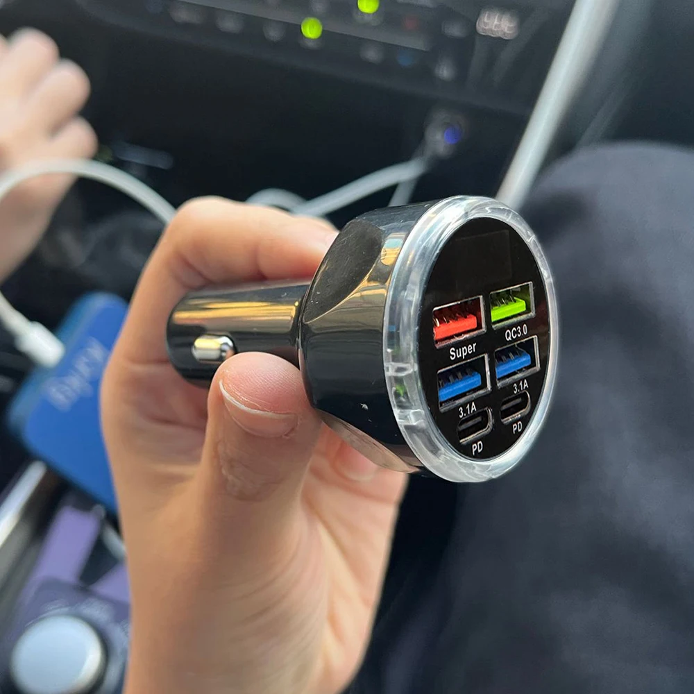 2-6 Ports Car Charger Fast Charging PD QC3.0 USB C Car Phone Charger Type C Adapter in Car For iPhone Samsung Huawei Xiaomi