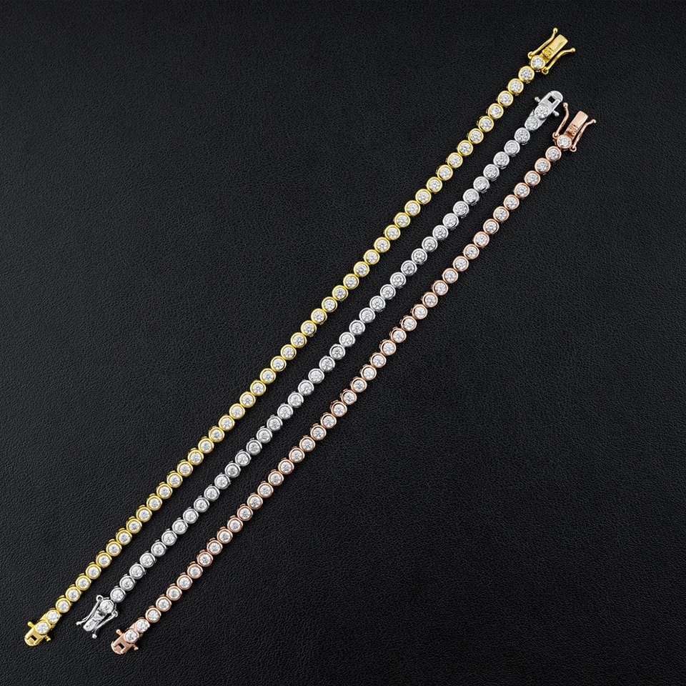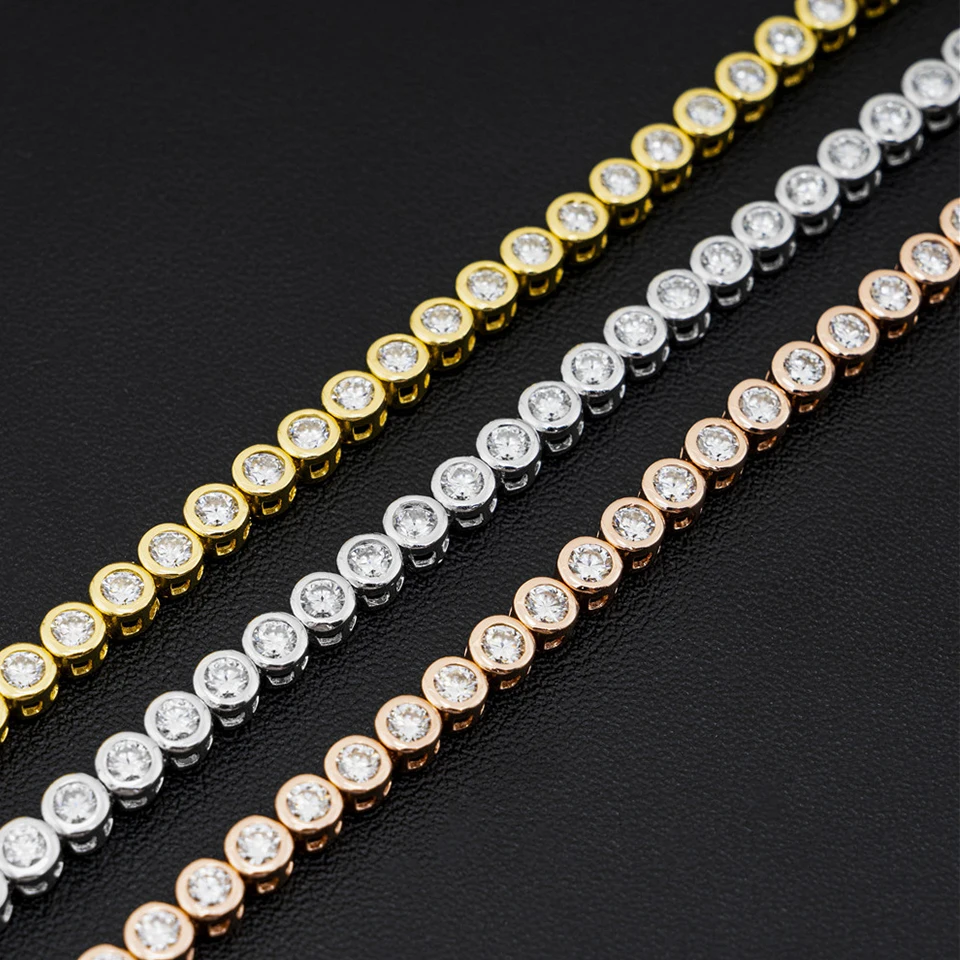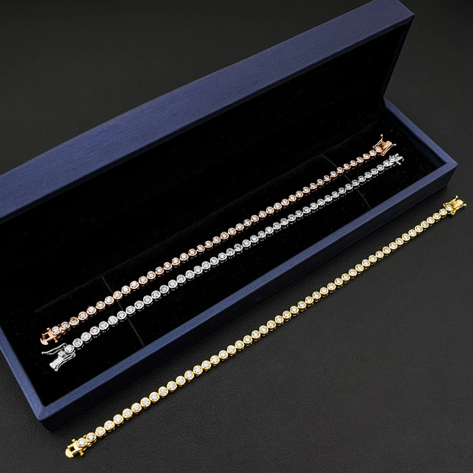 2mm Moissanite Tennis Bracelet for Woman Men 925 Sterling Silver Plated 18k Gold Hip Hop Chain Round Bubble Diamond Bracelets