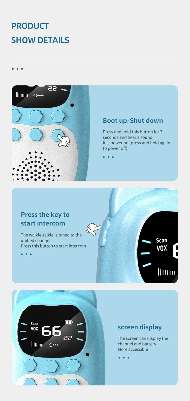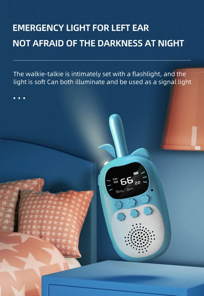 2pcs Kids Walkie Talkie 1000mAh Rechargeable Handheld 0.5W 3000m Radio Transceiver Interphone for Children Toys Birthday Gifts