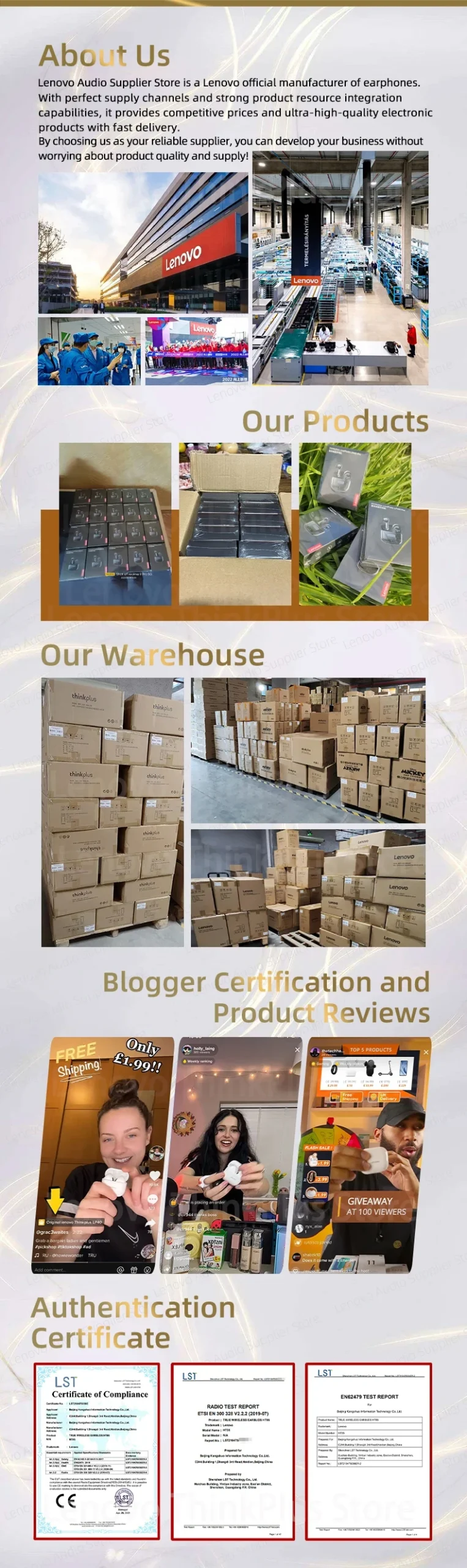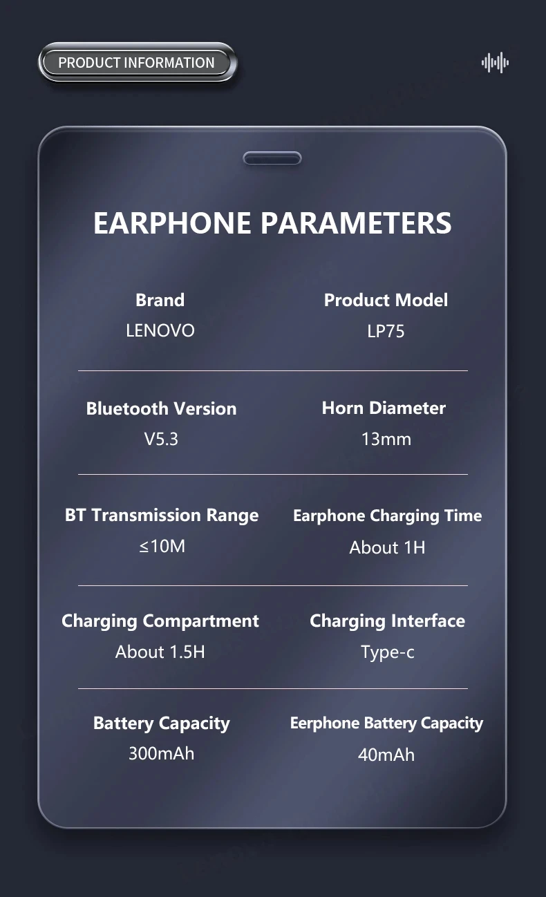 Lenovo Original LP75 TWS 5.3 Bluetooth Wireless Earphones LED Noise Reduction 2023 New