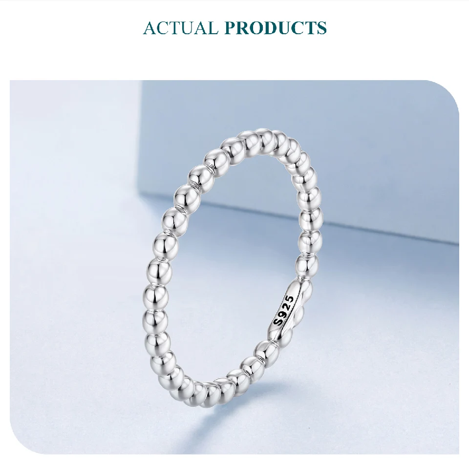BAMOER Solid 925 Sterling Silver Eternity Bead Wedding Band Ring, Minimalist Thin Chic Statement Band Ring Comfort Fit