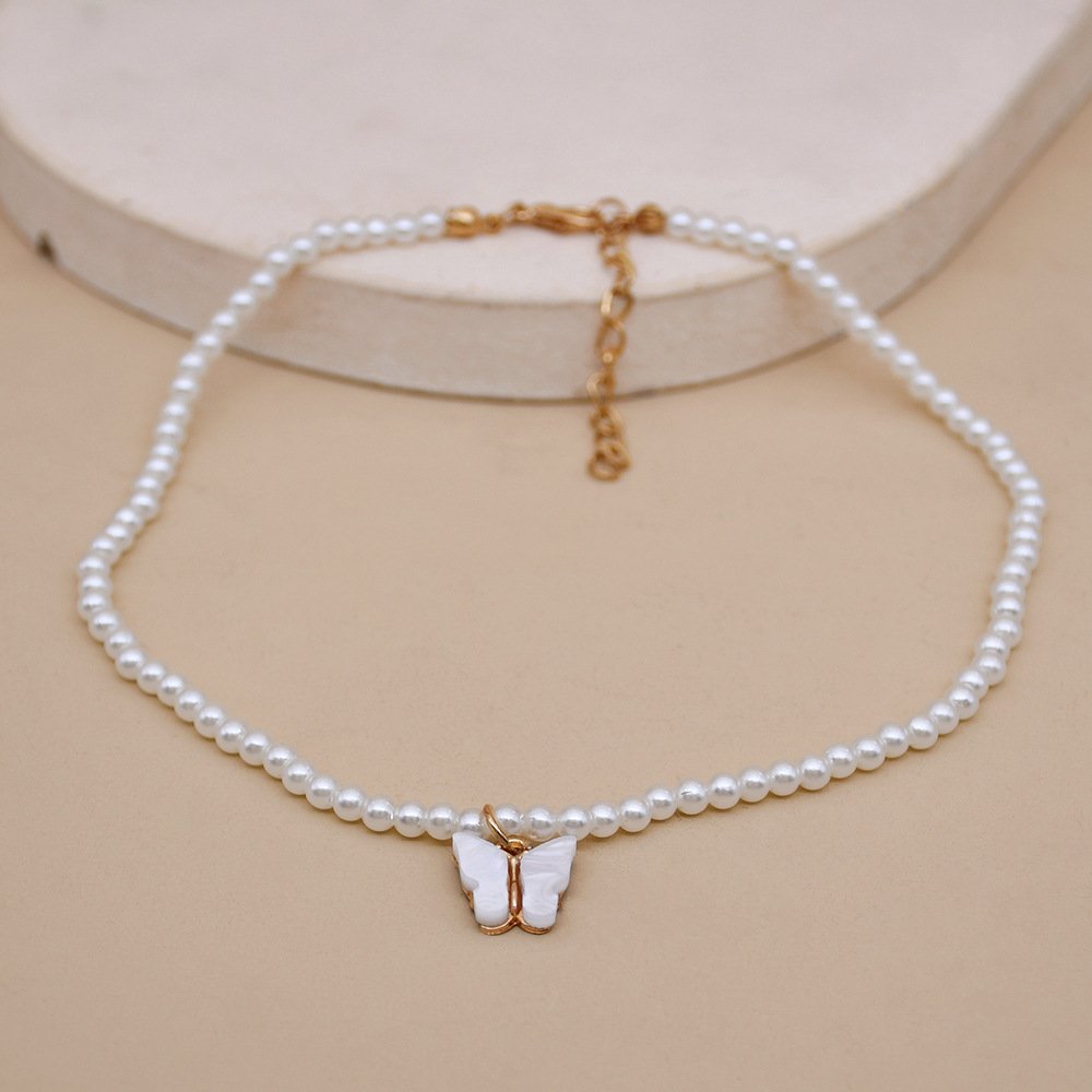 Elegant White Pearl Choker Necklace Small Round Pearl Wedding Butterfly Necklace For Women Charm Fashion Jewelry