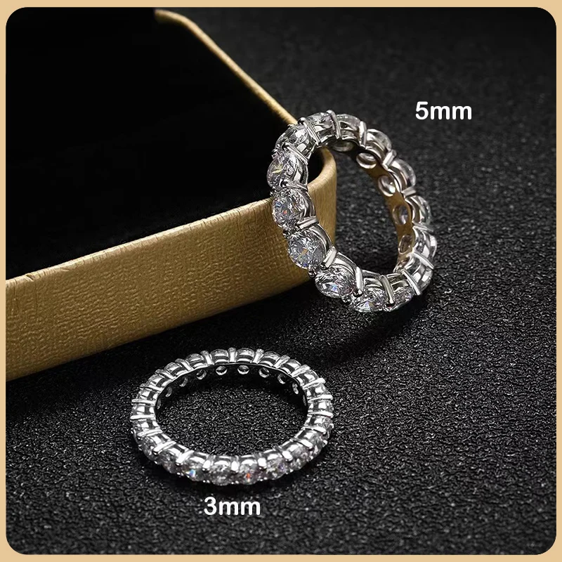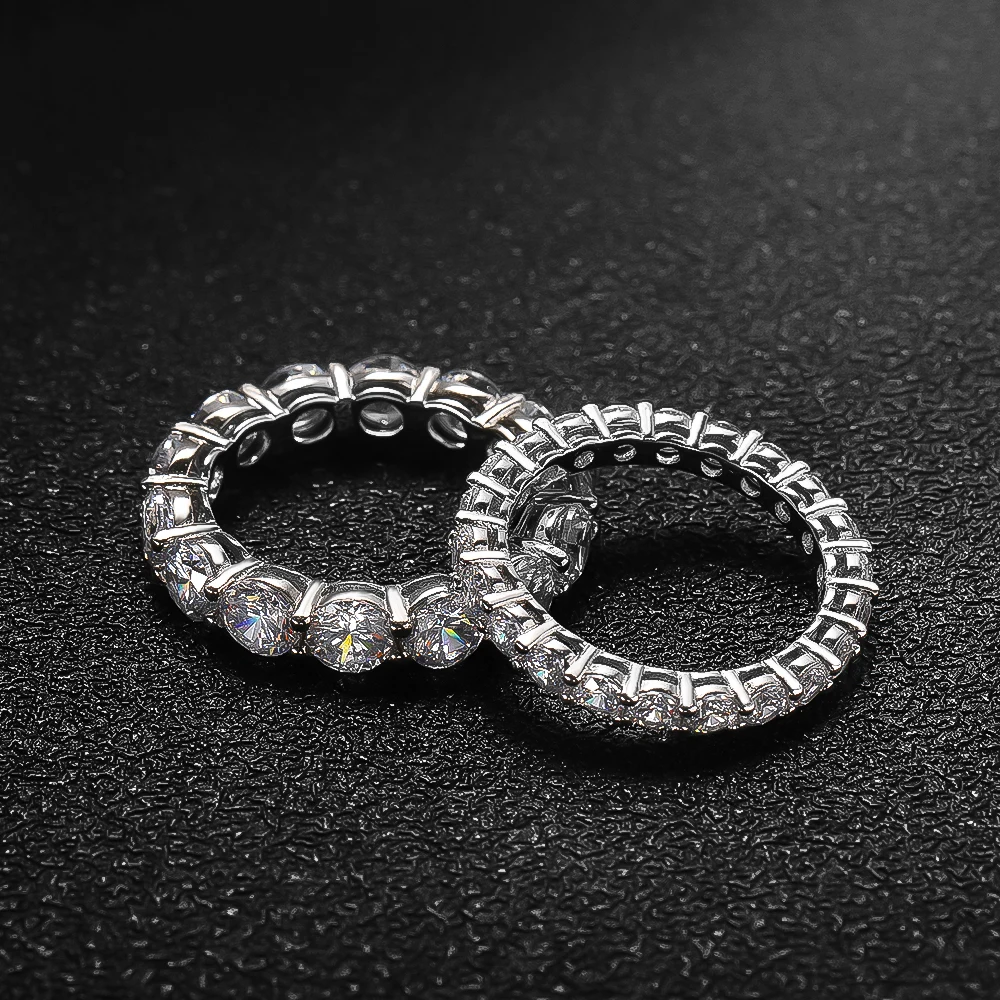 EWYA Luxury 2.2cttw 3mm Moissanite Full Enternity Diamond Engagement Ring For Women S925 Silver Wedding Band Rings Fine Jewelry