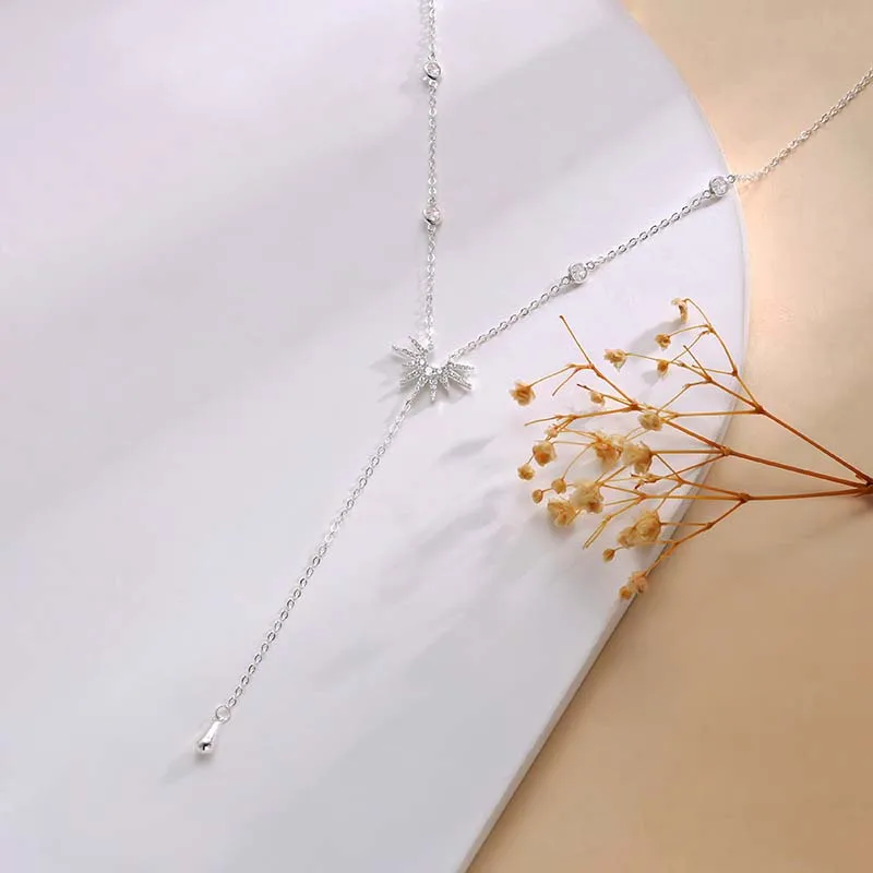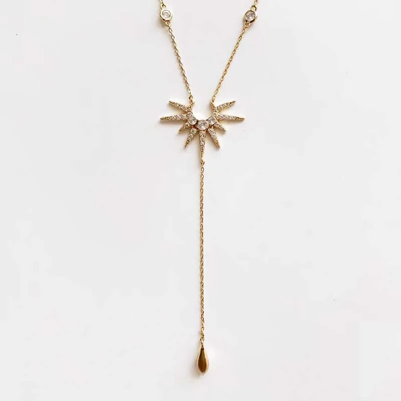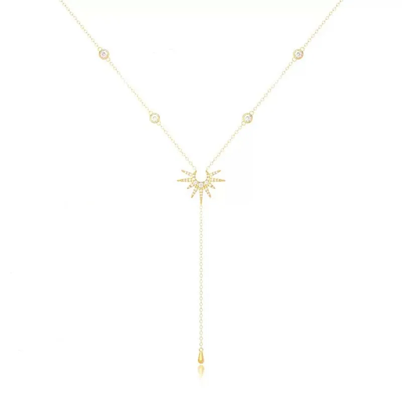 Fashion Gold Color Y-Shaped Pendant Necklaces For Women Girls Luxury Cubic Zirconia Long Tassel Dangle Choker Jewelry Gift