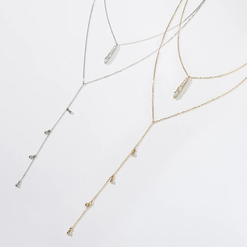 Fashion Gold Color Y-Shaped Pendant Necklaces For Women Girls Luxury Cubic Zirconia Long Tassel Dangle Choker Jewelry Gift