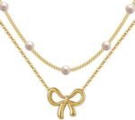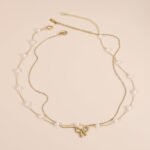 Simple Pearl Double Layer Choker Fashion Gold Color Necklaces Chain Small Bow Pendant Necklace Jewelry Gifts For Women Fashion Jewelry Valentine’s Day Gifts