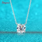 Smyoue White Gold Plated 1-10CT Moissanite Necklace for Women Classic Four Claws Pendant Wedding Jewelry 925 Sterling Silver